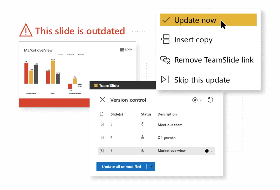 TeamSlide’s version control feature allowed Sales to receive updates to their presentations with content approved by internal experts.