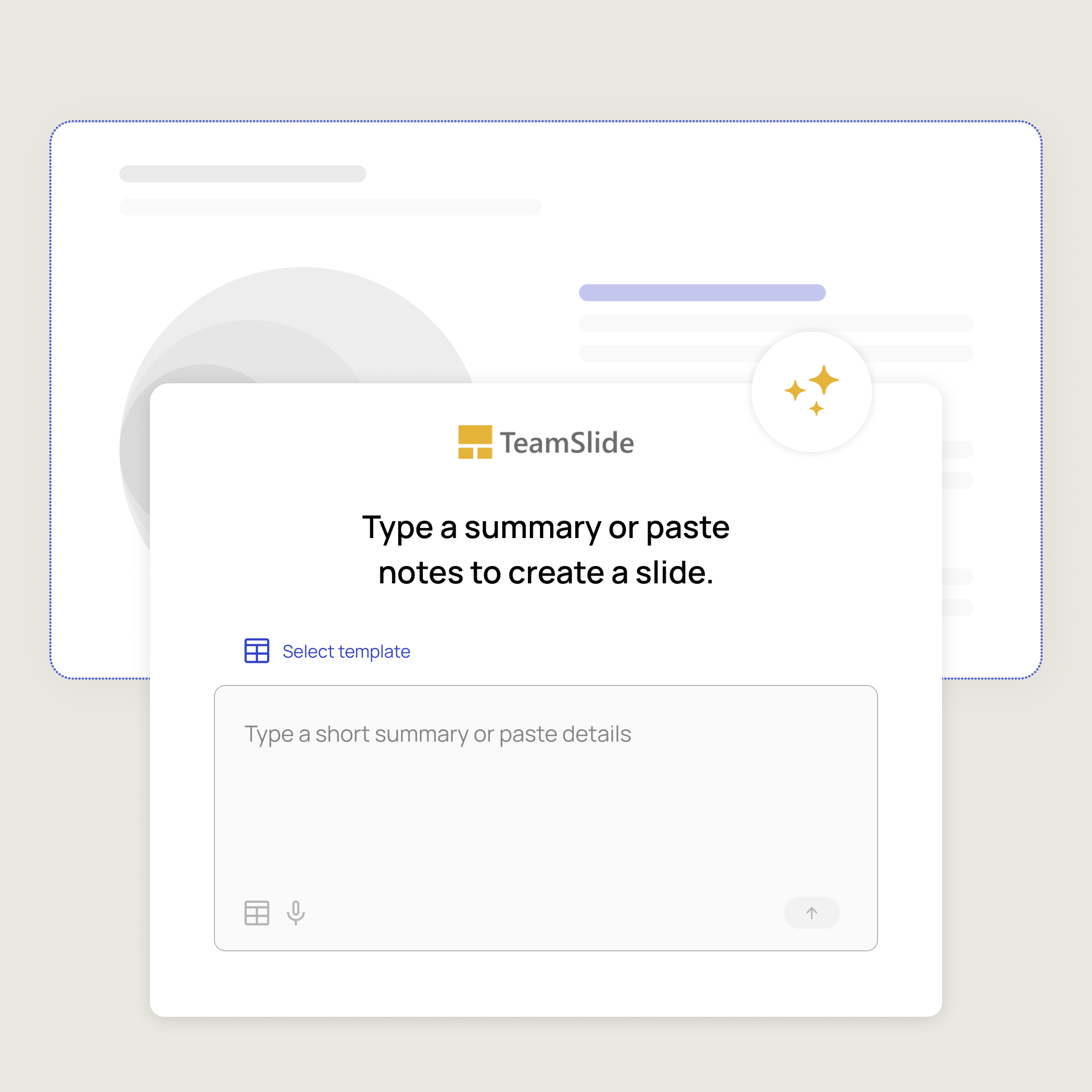 TeamSlide helps you generate structured, on-brand slides directly in PowerPoint. We use a combination of AI, traditional algorithms, and templates to generate high-quality slides. Instead of starting from scratch, you begin with proven layouts and adapt them to your message in minutes.