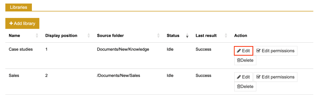 2. Identify the library that is connected to the folder you wish to change. Click edit.