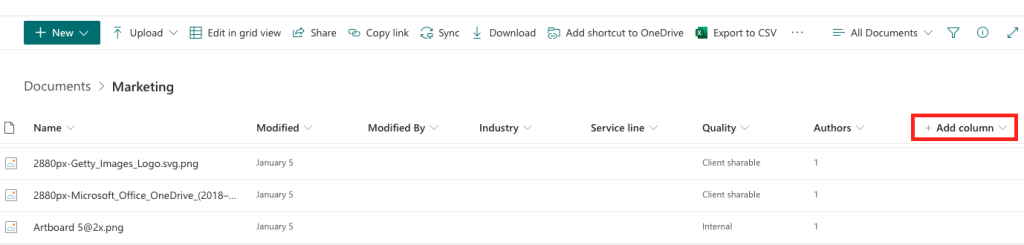 A consulting organization may have a folder that contains partner biographies. Creating a column in SharePoint that describes the ‘Permitted use’ of the biographies may be helpful. Within ‘Permitted use’, the available options might be “internal” or “client shareable”.