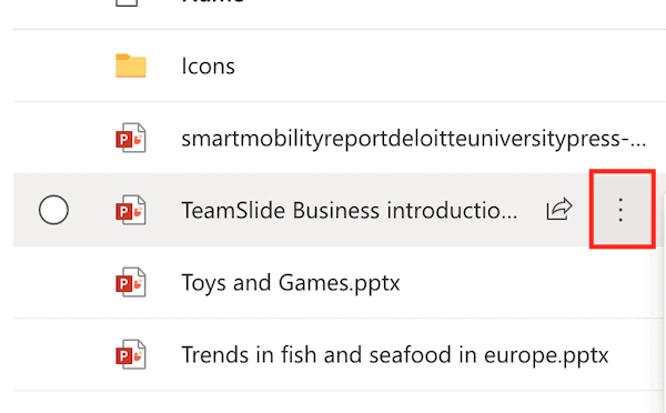 Alternatively, hover your mouse over the file name. Click the 3 dots that appear to the right of the file name.
