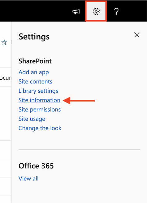 Note: If you don’t see ‘Site settings’, select ‘Site information’ and then select ‘View all site settings’.
