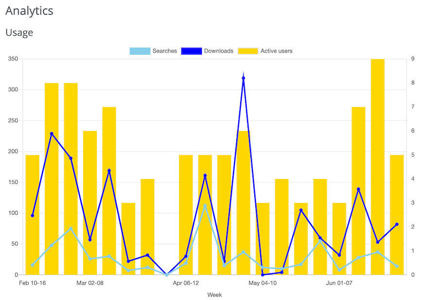 If you have customized metadata fields, they can also be included in the downloads report. This, for example, gives you an understanding of the most used slides by each field.